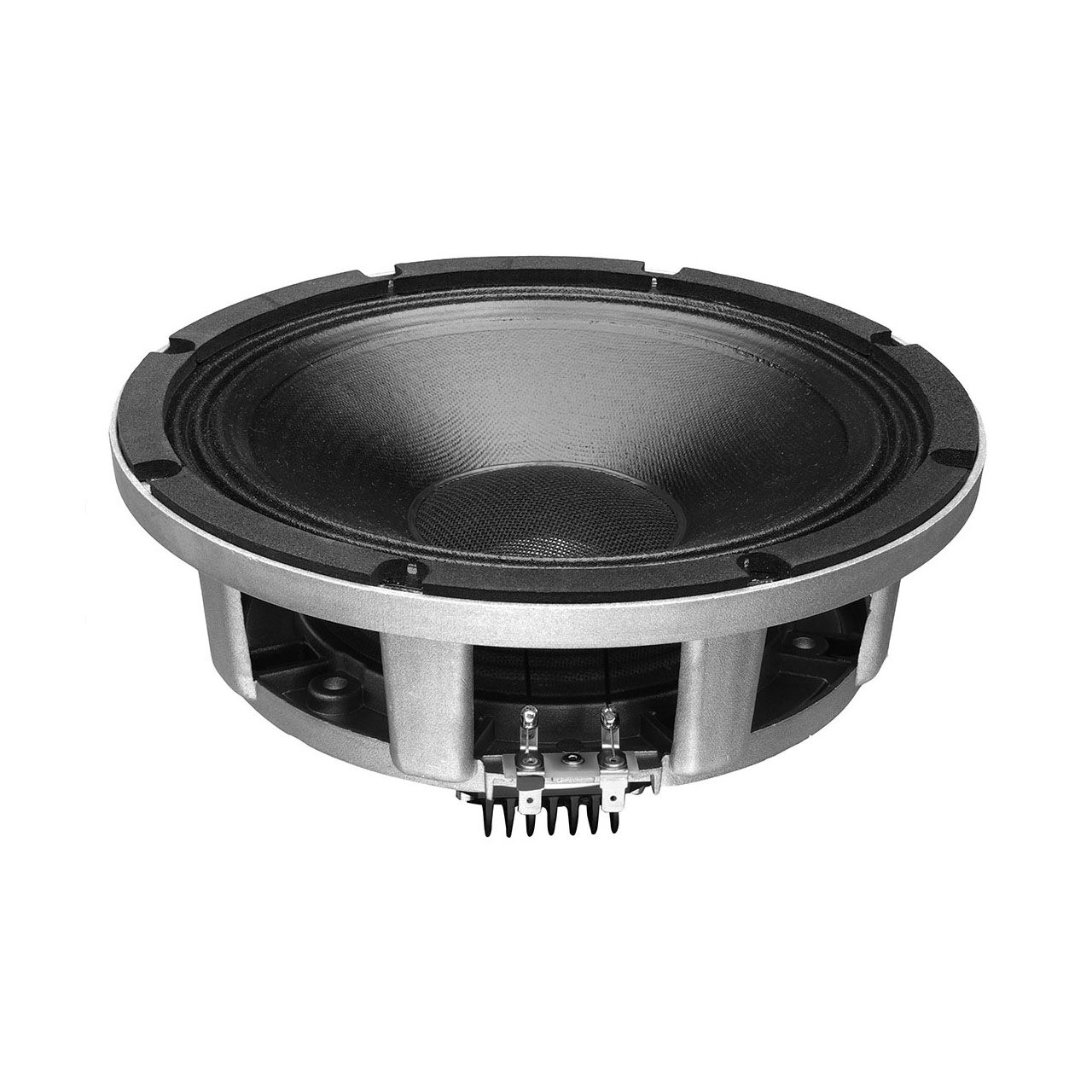 The low profile, smooth curvilinear LF cone provides smooth response within its intended frequency range and water prove protective coating, allowing application in a wide range of environments. The state of the art 51 mm (2 in) LF voice coil has Kapton former, which together with high temperature resistant resin ensure high reliability by high power. Double aluminium demodulating rings on the magnet structure reduce distortion and inductance and improve transient response.