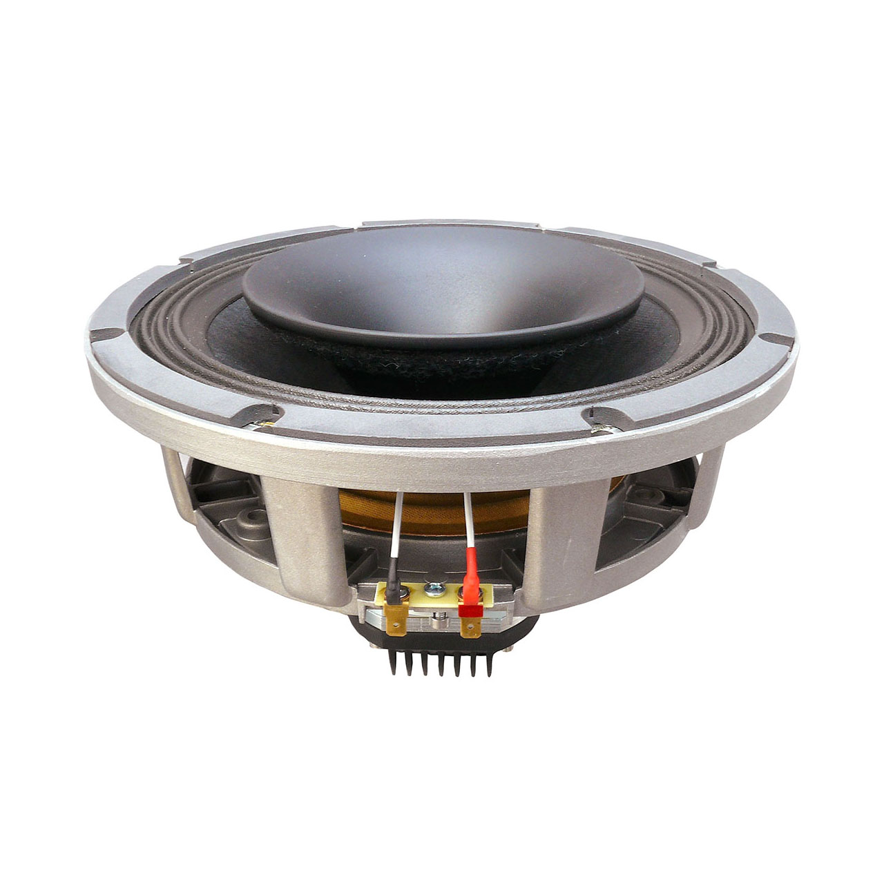 The 10NHCX is a 10″ / 1″ coaxial transducer with integrated HF horn, designed for use in compact reflex enclosures with high SPL and nominal dispersion of 60 degrees.