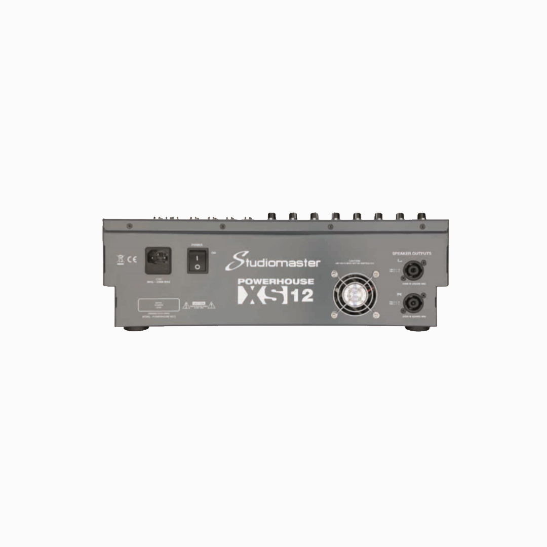Introducing the Studiomaster POWERHOUSE XS12 – a compact 12 input – 8 mic / 2 stereo analogue mixer console with 16 DSP effects and 2 x 500W at 4ohms amplifier. In additional, built in USB record / playback, bluetooth playback, adjustable compressor, HPF and PFL on every channel for perfect live mixing.
